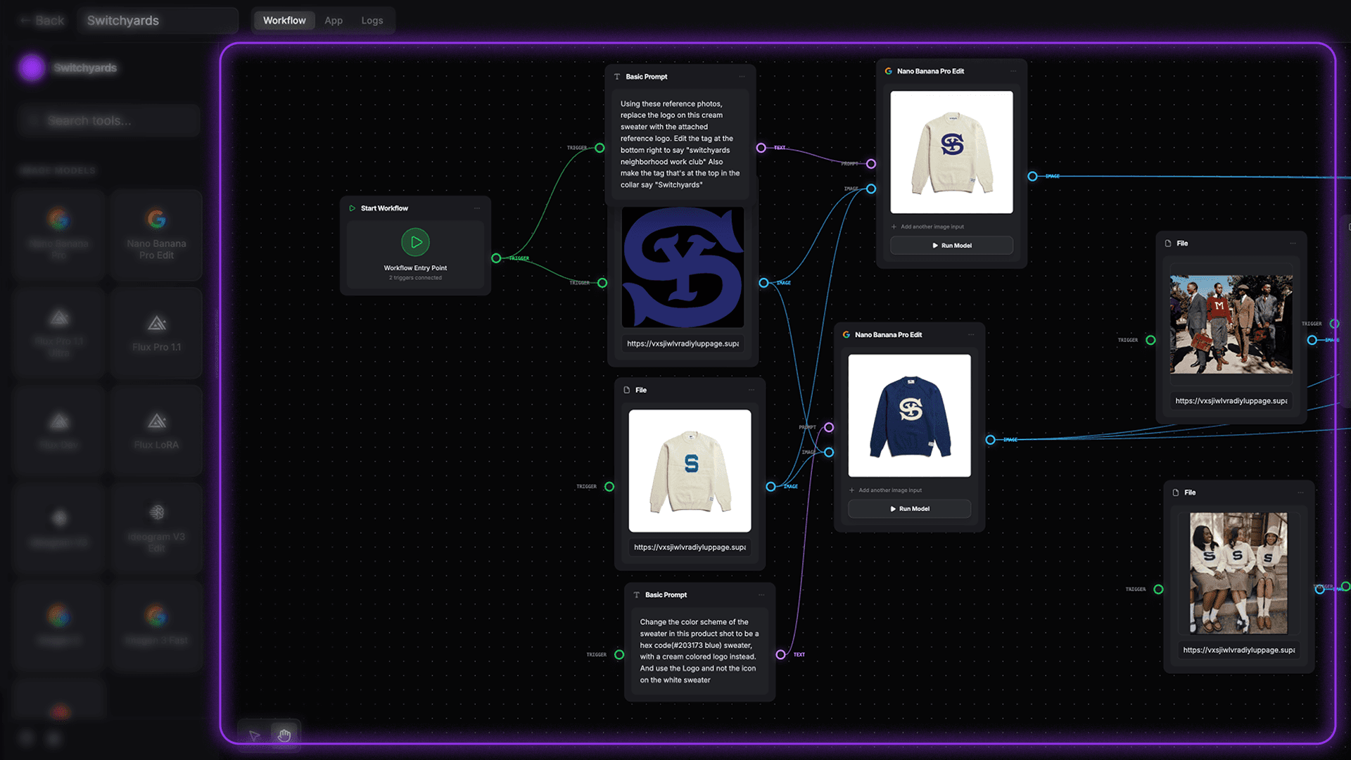 Purple is an experimental AI creation tool that allows users to generate digital assets by visually connecting prompts and AI models through nodes. The product is currently live and evolving as we explore new ways to make AI workflows easier to build and understand.
